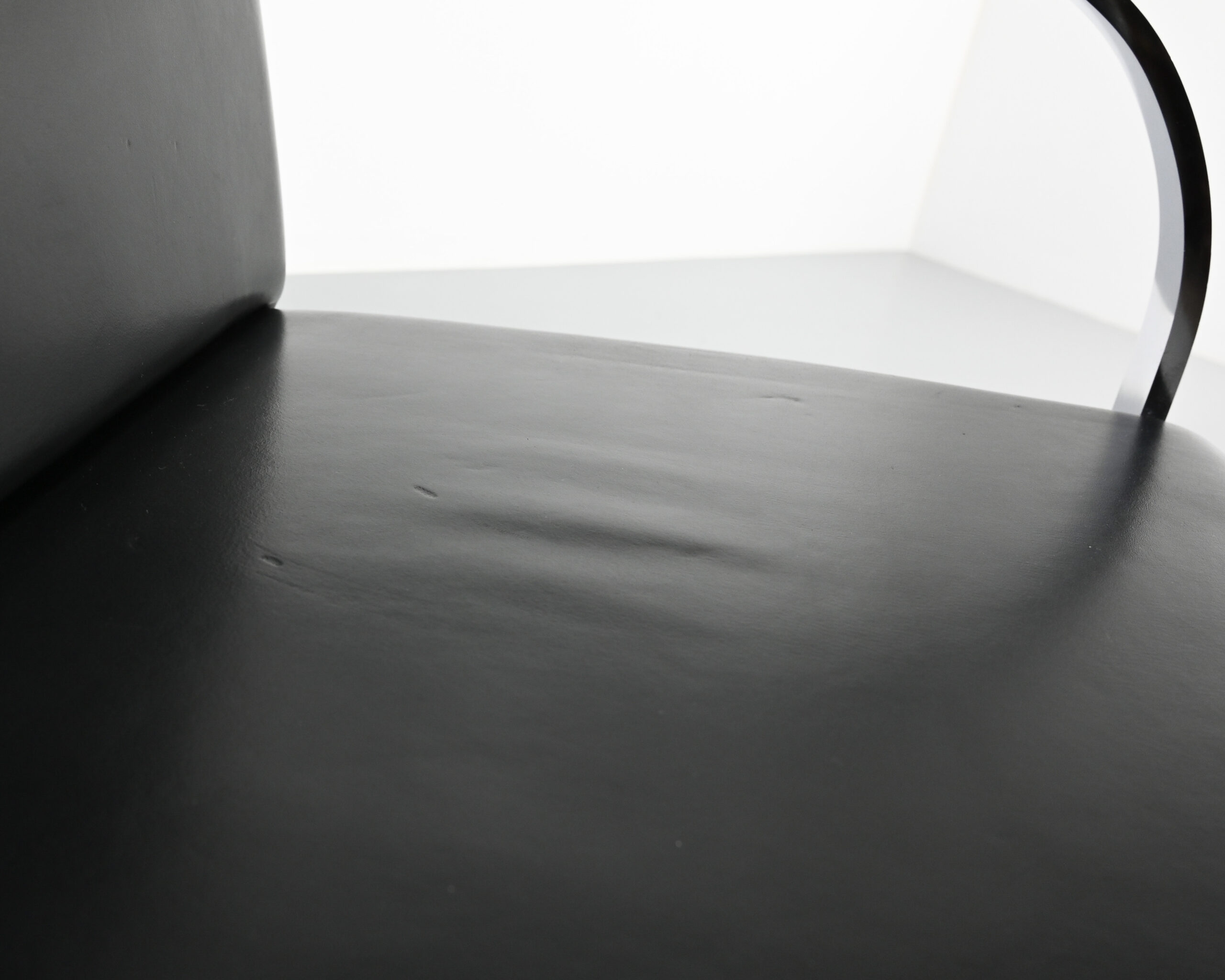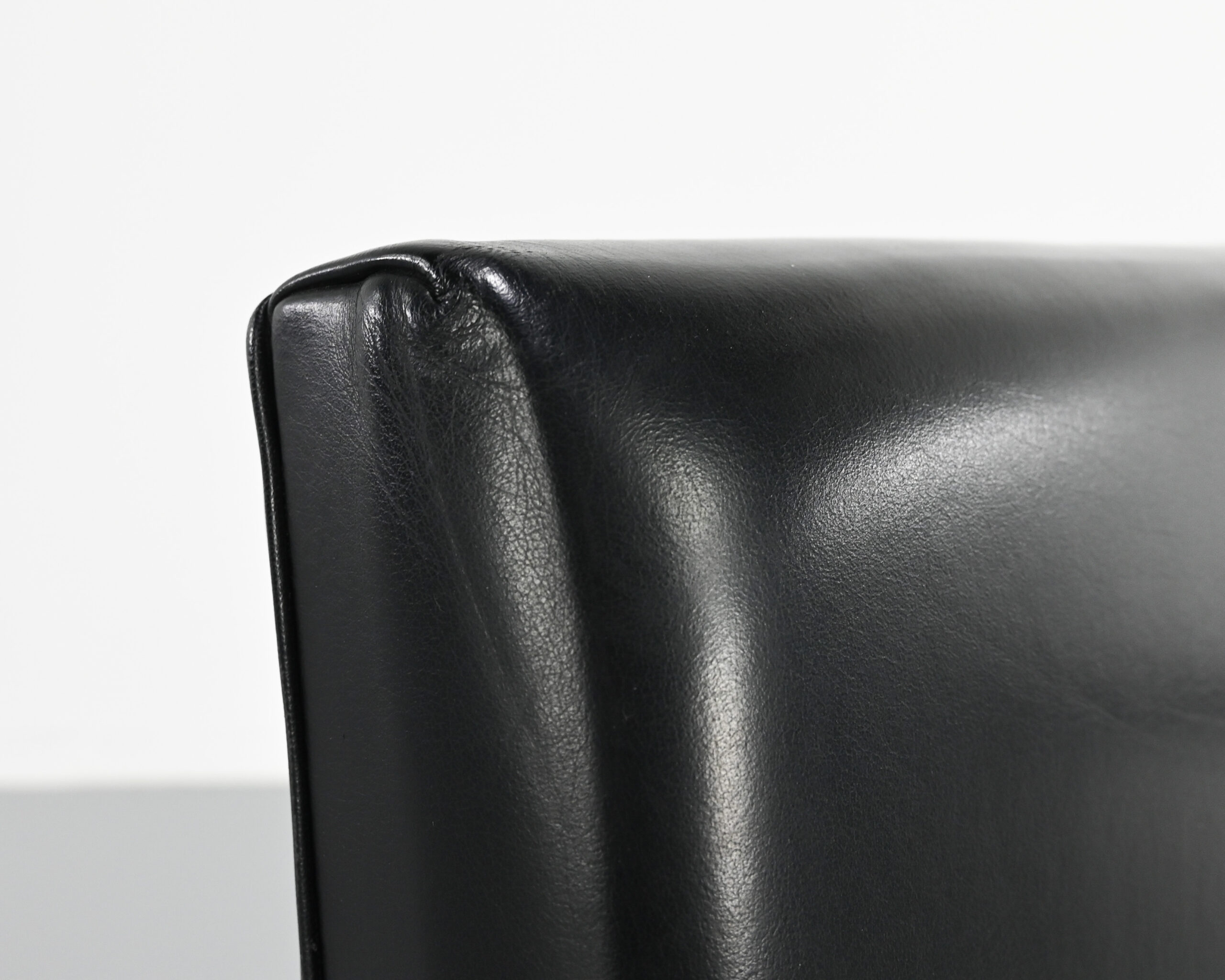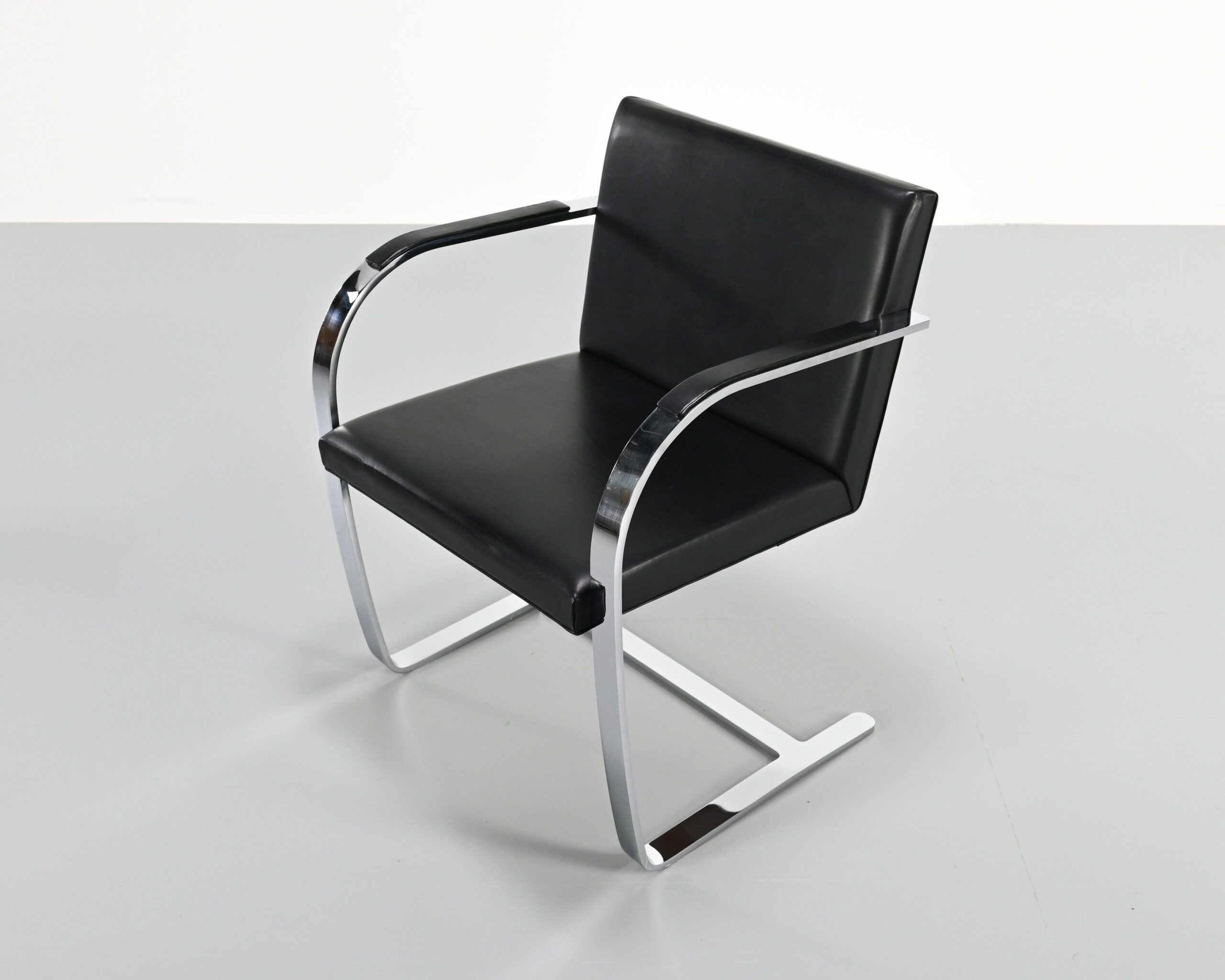 Paire de fauteuils modèle BRNO, en cuir noir et acier poli. Designer Mies Van Der Rohe. C.1960. Traces d’usage, bon état général.