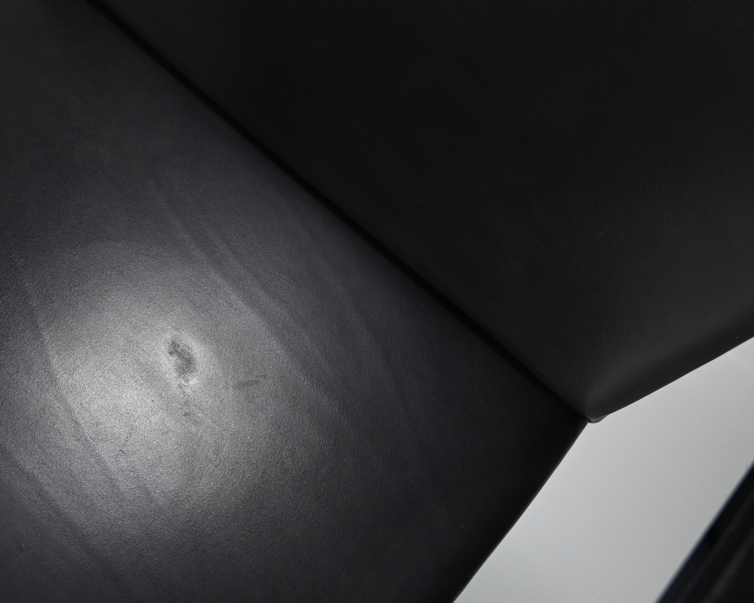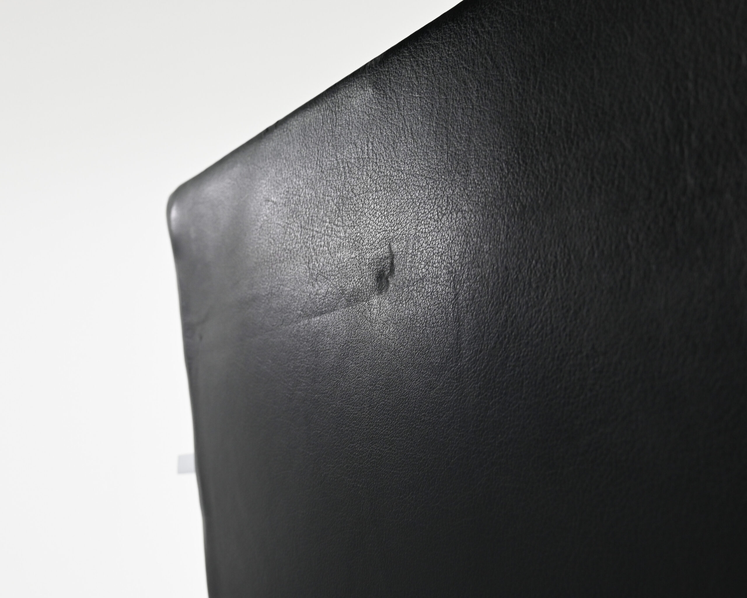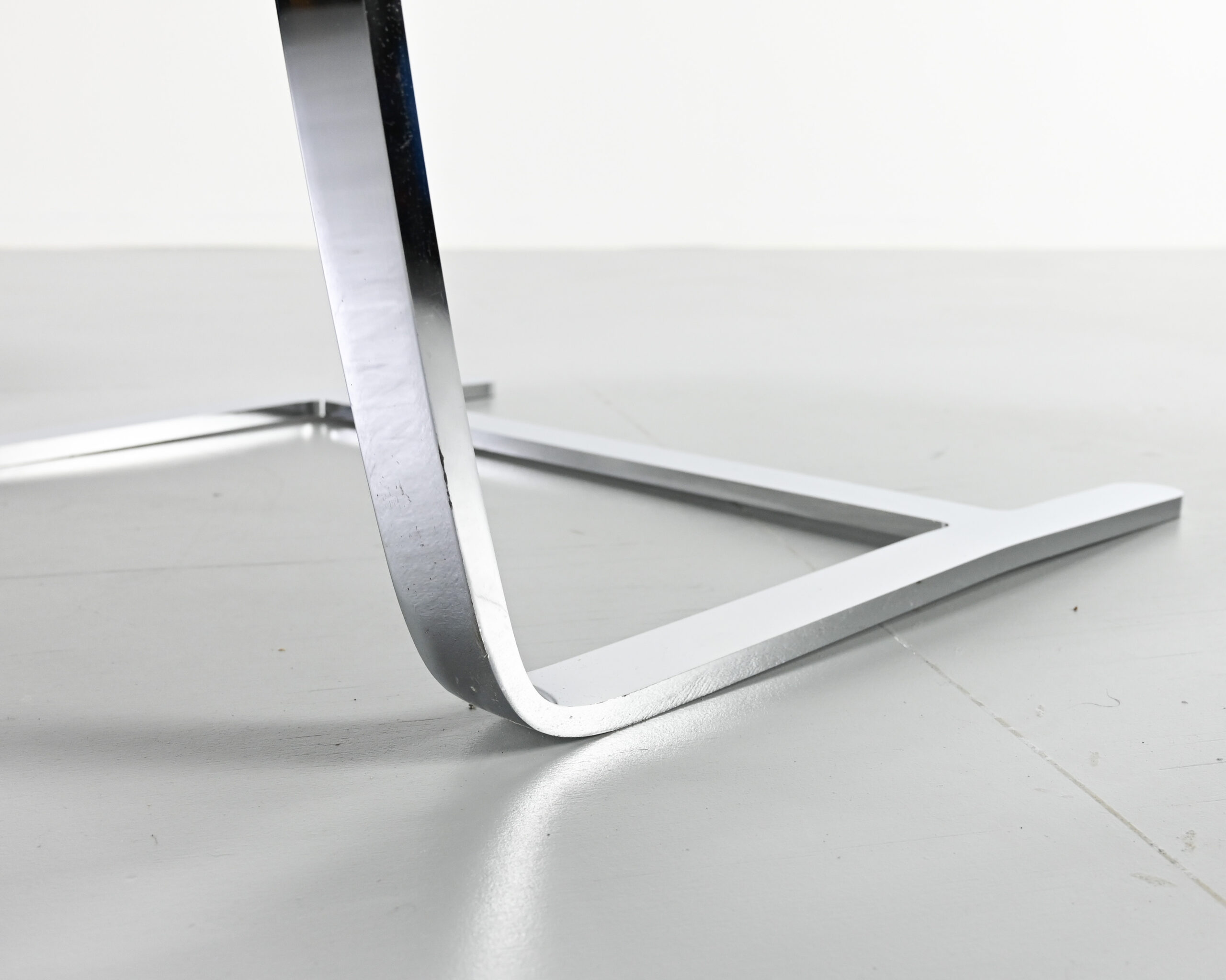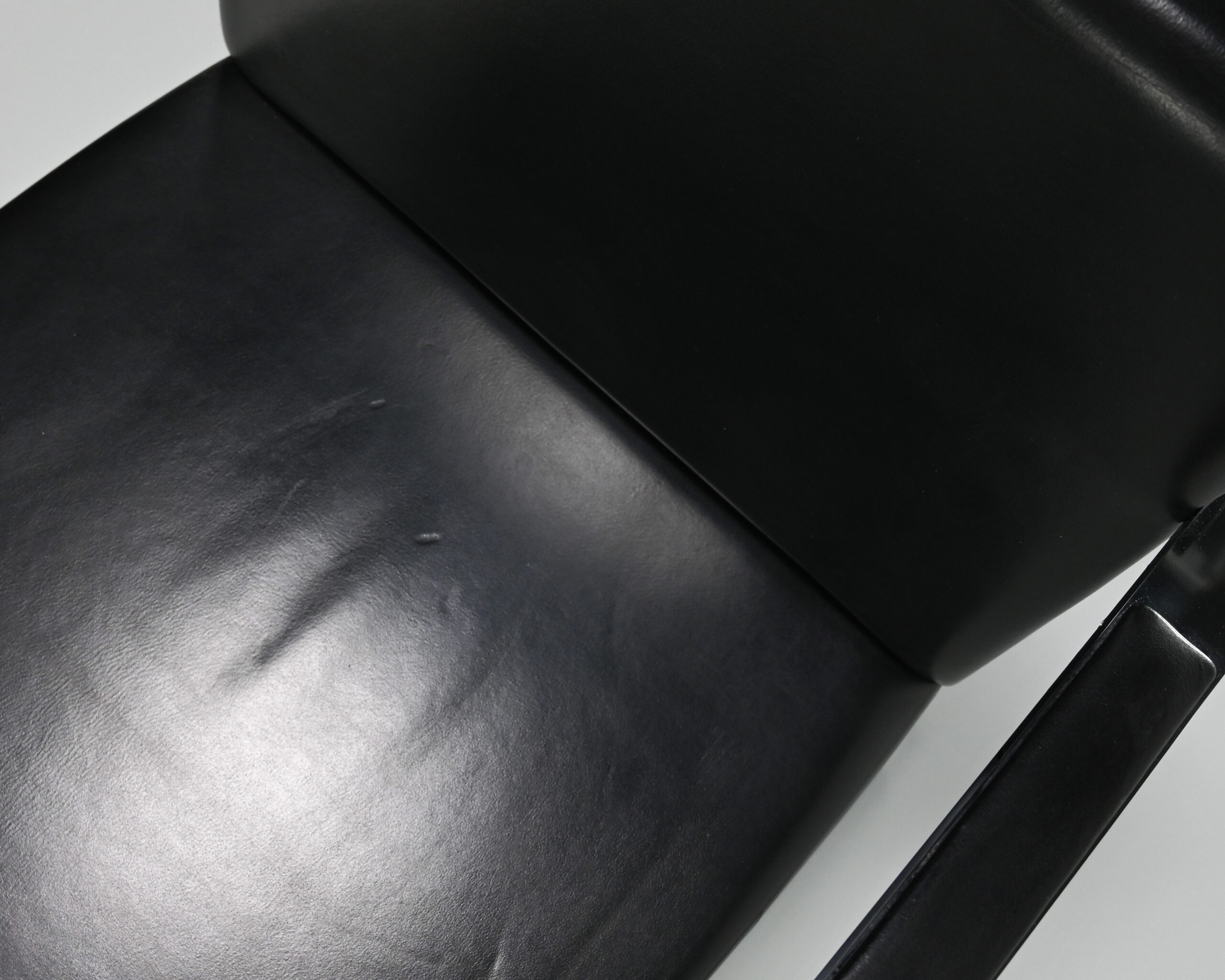 Paire de fauteuils modèle BRNO, en cuir noir et acier poli. Designer Mies Van Der Rohe. C.1960. Traces d’usage, bon état général.